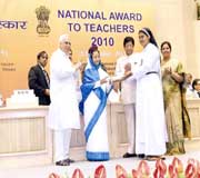 Best Special school Teacher National Award 2010-11 Received the Principal Sister Biji Jose from the President of India.